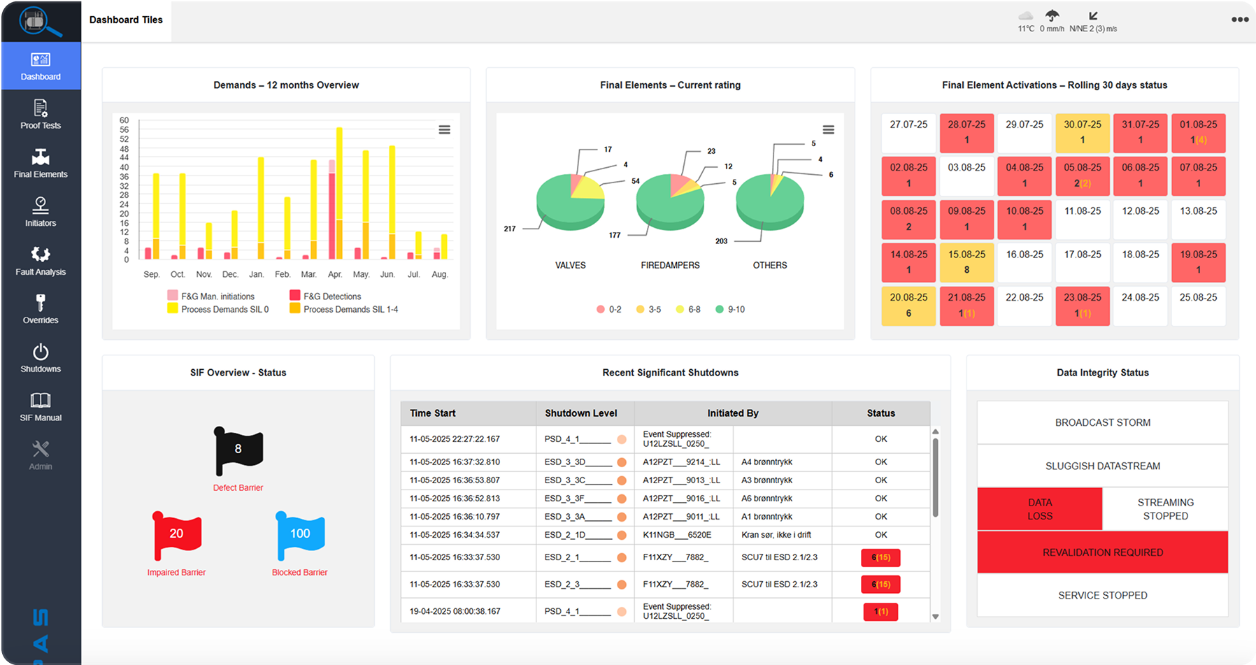 "SPAS has given us great insight into the reliability of the instrumented barriers. It makes it very easy to tackle "bad actors" and focus on them. We can also spend less time on manual work as SPAS gives us automatic confirmation of the status of the safety functions. SPAS supports us in having an overview of the status of the instrumented barriers at all times. This is in accordance with the regulations, ref. Management Regulations §5 Barriers: It must be known which barriers and barrier elements are out of function or are weakened."